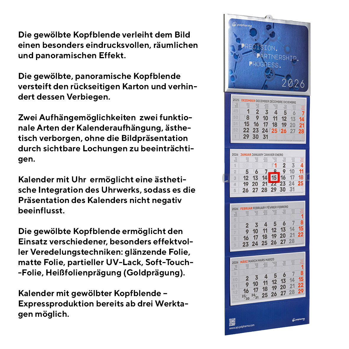 3-Monatskalender mit Uhr: